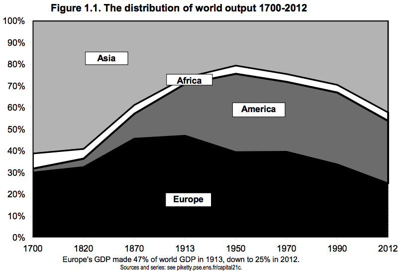 The graph above shows that Asia had 60% of world GDP until around 1800 and most of Asia was pretty empty. It was really only the SE corner of Asia where most of economic activity was concentrated due to a particular abundance of their special resource.