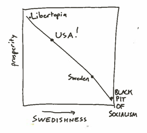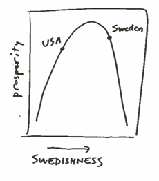 Although Friedman’s quote exhibits some sloppy linear thinking, he clearly understood the non-linear relationship between socialism and prosperity. He even helped invent payroll tax withholding for the US government as a way to raise tax revenues more efficiently, so he clearly didn’t advocate for zero taxation in all cases! He just thought that the peak prosperity of capitalism could be achieved with a little less socialism than the Swedish voters want. Although many Americans think that Sweden is socialist, they don’t agree. They have never officially called their economic system socialist and in some ways they are more free-market than the US.