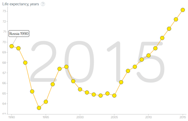Russian life expectancy also plummeted under capitalism and didn’t recover back to its peak under communism until 2012.