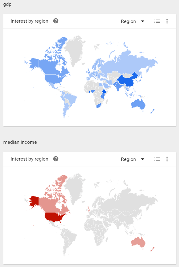 But median income still isn’t nearly as popular as GDP in overall Google searches in the US: