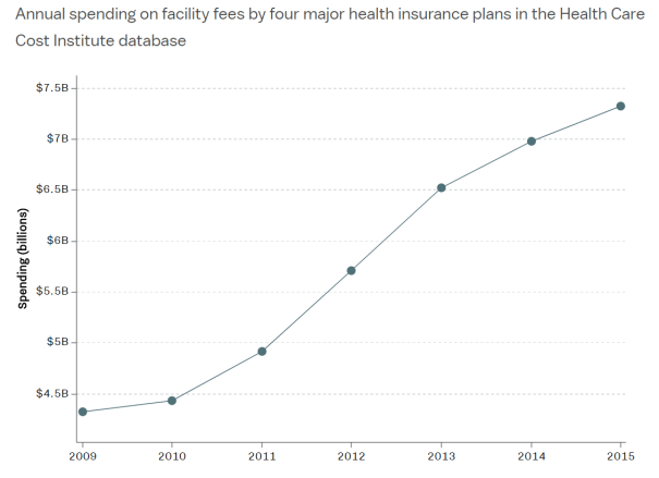 There is a lot of monopoly power in healthcare in the US, and it has been driving up prices by decreasing competition. Research shows that greater consolidation in the hospital industry causes higher prices, but it is hard to explain data showing that emergency room fees have risen by 2/3 in only six years: