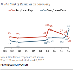 Trump’s efforts have been scarily effective at getting the Republican base to flip its opinion away from it’s nearly century-long tradition of thinking Russia is America’s adversary and an authoritarian enemy of freedom, to thinking that Russia is an ally in the struggle to make America great again.