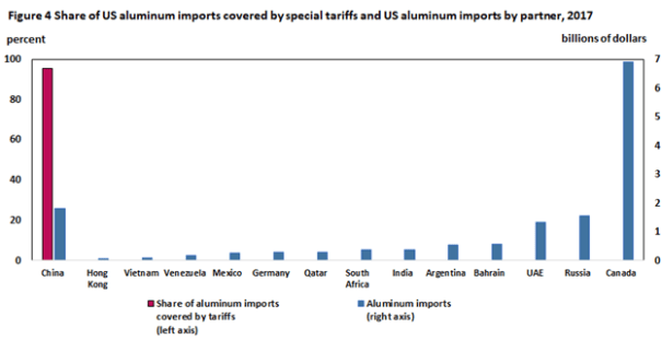 Trump says he will impose a 25 percent tariff on steel and a 10 percent tariff on aluminum. Trump says it is to punish China, but we don’t actually get much steel from China and China is already subject to special tariffs: