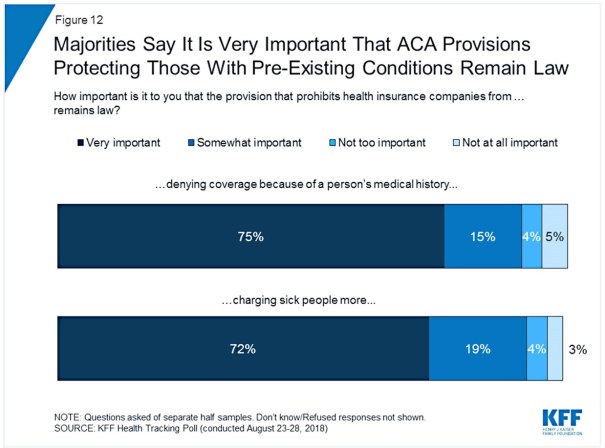 An August 2018 Kaiser tracking poll confirms that Americans overwhelmingly want to protect health coverage for people with pre-existing conditions: