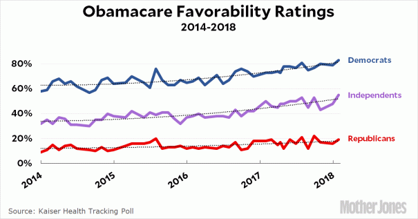 Meanwhile, as Obamacare ages, public opinion has been slowly warming to it:
