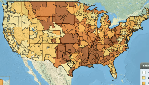 Certificate of need restrictions are used in other parts of the healthcare industry to restrict businesses for expanding their capacity (and fixed costs) beyond what regulators think is efficient in order to hold down overall costs. For example, hospitals and nursing homes typically require this kind of permission to expand and build more space for more beds because there is wide variation in the number of hospital beds in different regions of the country and areas with more hospital beds typically have higher expenditures without achieving better results. For example, here is a map from the Dartmouth Index which shows that McAllen and Abilene Texas have about twice as many hospital beds per person than neighboring Austin. (The latter two areas are circled on the map).