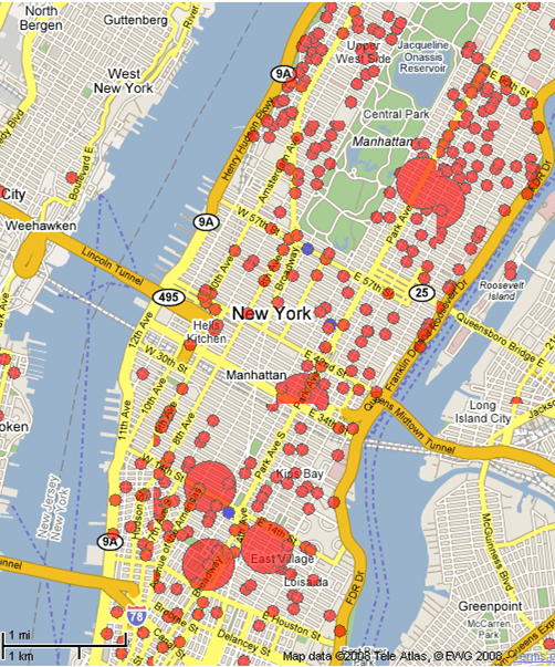 Unfortunately, they must have gotten sued by farmers because they now only show a map of the total welfare checks send in each state. Before they took down their map, I made a screenshot of their map of Manhattan Island in New York City: