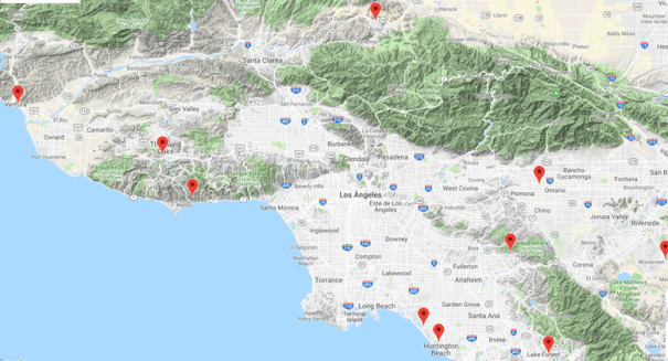 I hope they can keep it online without getting pressured by farm owners who want to censor this kind of information. Below is a zoom-in on the Los Angeles area. Some of these addresses got more than a half million dollars from the government in 2018. As you would expect from the fact that all these addresses are receiving government checks worth over $100,000 per year, most of these addresses are in elite, expensive places to live with median home prices well over a half million dollars.