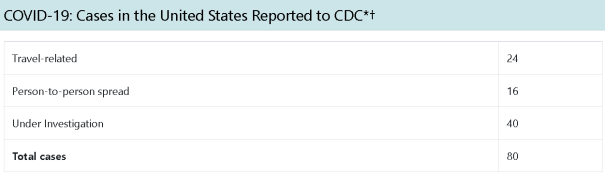 That’s in addition to the first case of community spread discovered in California last week (where it had already been spreading for over a week when it was discovered) and the total number of community-spread cases is now at 16 nationwide with 40 more possible cases under investigation according to the CDC data: