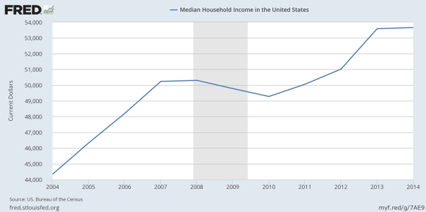 Although the employment-population ration in first graph has been trending back upward again since the last recession, this is probably just a temporary rise that is due to the economic recovery and the next recession will push it back down again. The US labor market is unlikely to ever return to the peak employment level reached in 2000 because the American workforce is getting older and more of the population will drop out of the labor force as more Americans retire. In 2015, 22% of the population was age 65 or older and the number of senior citizens is climbing rapidly.