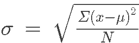The population standard deviation (σ) is the total squared deviation from the population mean (μ) divided by the total population size (N):
